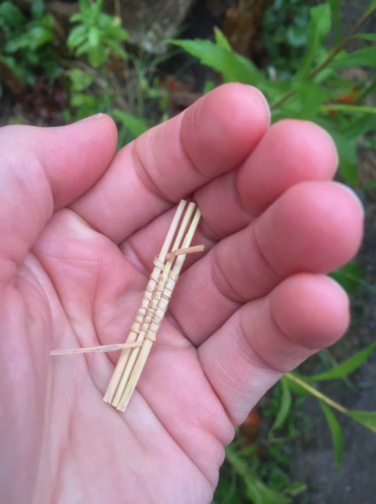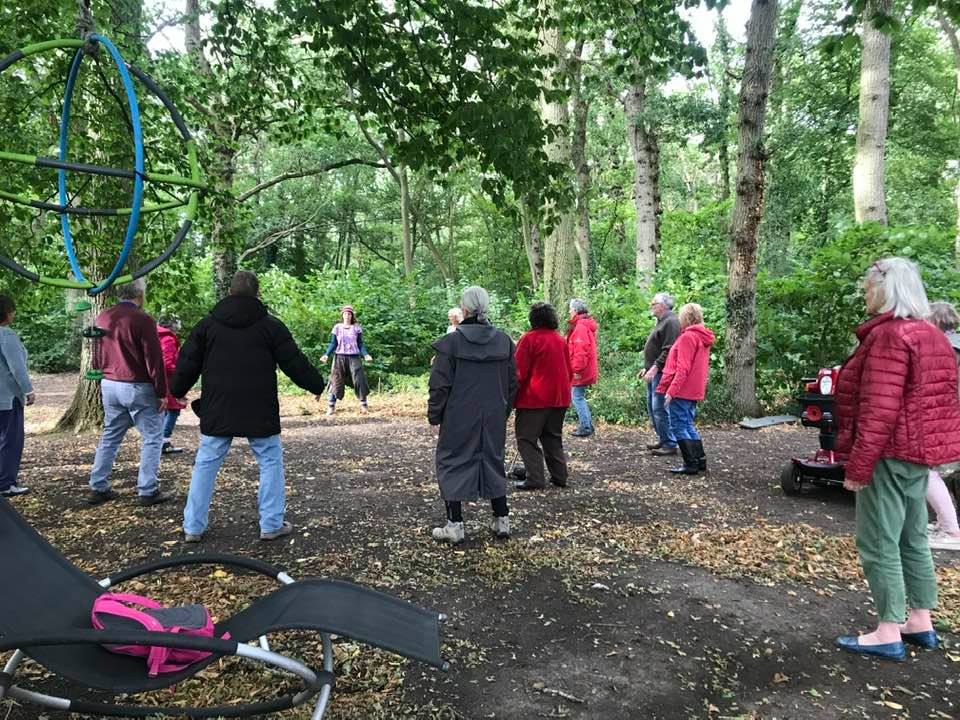 Amazing volunteers helped us with registration and location. Where did we come from to get here we asked? Chi Gong under the Hornbeam. Connections from the past. Getting lost in the woods. Clarissa and Clive. A miniture weaving of grass remembered from the last time linking us forward.