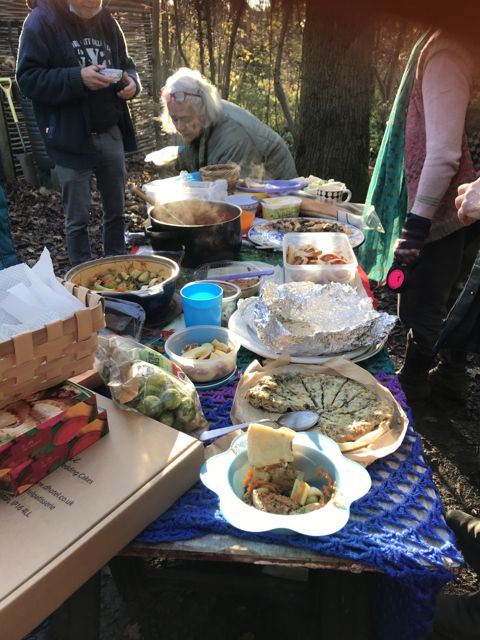 After a shared lunch of delicious fare we moved towards the gifted sun, and sat around the cabin to hear a story from Sue.