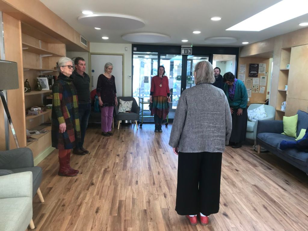Shona set up a table of the elements, a candle replacing our fire, a cup of water, a feathery grass for air, and a piece of wood covered with moss for earth. We had the help of the Pear Trees wonderful volunteers Suzie, Lindsey and Jane, together with our own Lesley.