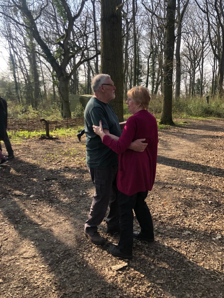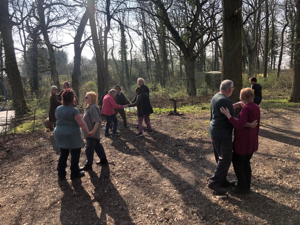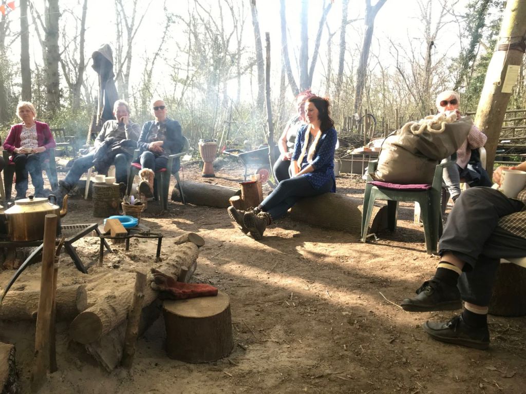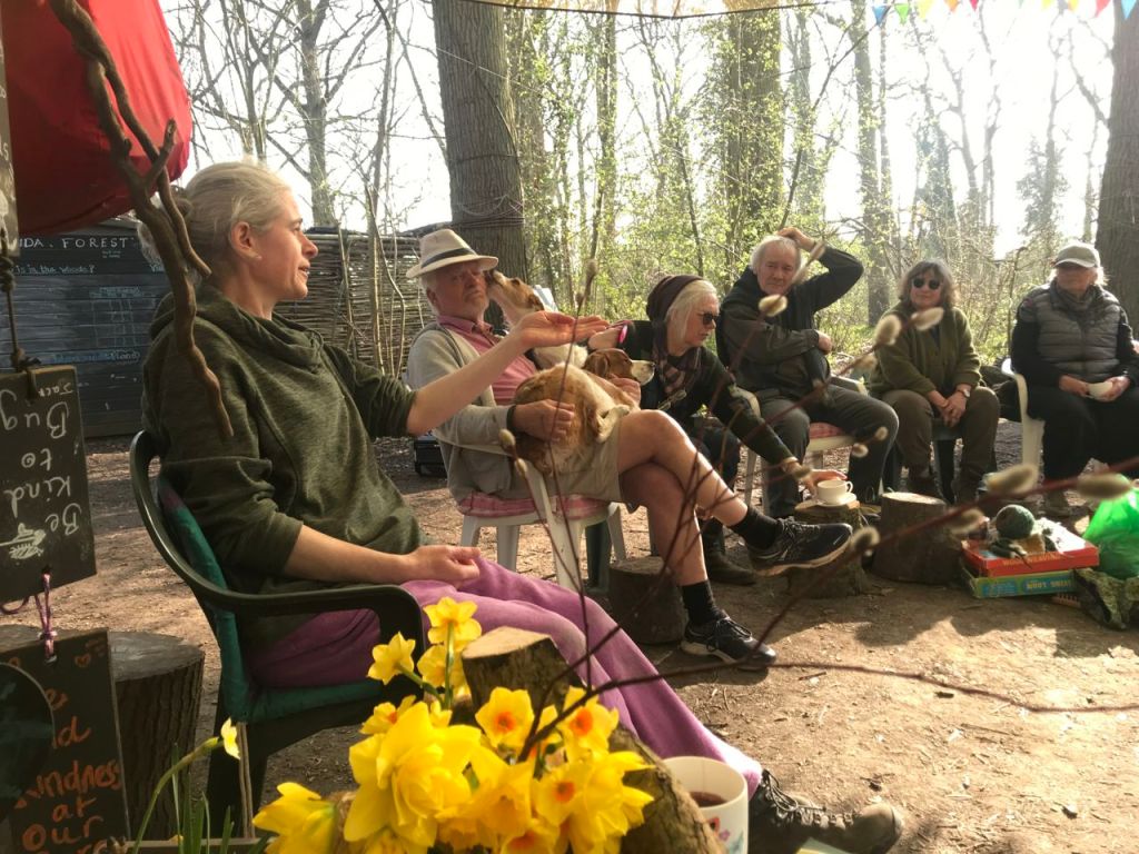 After listening to the spring sounds around us, we made our imitation or observation: peoples breath, a dog bark, a pheasant, buzzing bee, laughter in the circle, the singing bowl. Do you hear the nightingale in your garden? one asked.